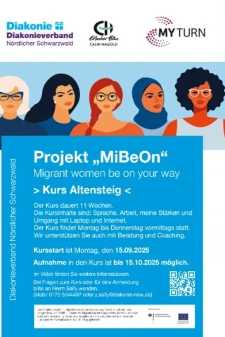 Weitere Informationen zum Projekt erhalten Sie auch unter: diakonie-nordschwarzwald.de/angebote-hilfen/projekte/esf-projekt-mibeon-migrant-women-be-on-your-way