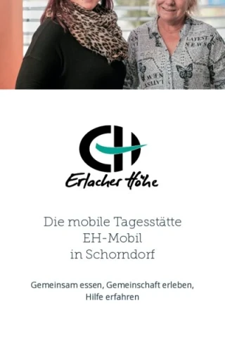 Sie suchen eine frischgekochte Mahlzeit oder wünschen sich einen Ort zum Verweilen, an dem Sie willkommen sind? Das EH-Mobil, die mobile Tagesstätte der Erlacher Höhe, kann ein zentraler Treffpunkt für Sie sein. Wir bieten Ihnen einen sicheren und geborgenen Aufenthaltsort, um gemeinsam statt einsam zu essen. So wirken wir gesellschaftlicher Ausgrenzung und Isolation entgegen.